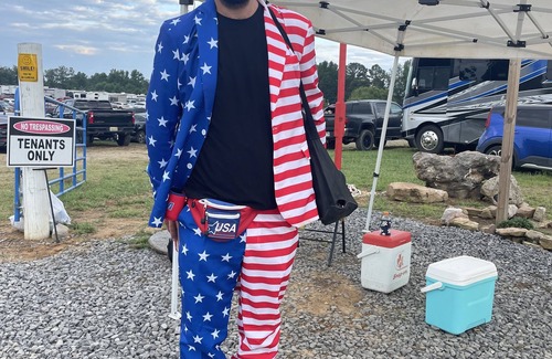Tent Camping for Rock The South. 1/2 mile walk to the entrance. A real bathhouse for tent campers only wristbands must be worn. 4 people 1 tent, one pop up tent and one vehicle. Gas grills only. 2.1 miles to Wal-mart for supplies. Cheap food truck and awesome Karaoke on Wednesday night so practice up.