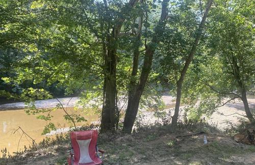 You have privacy with only 2 campsites. Relax and listen to nature and the flowing shallow river. Usually no deeper than wait deep and most of it knee deep. Most fishing is wading to the deeper areas. Most fish is bass and brim.