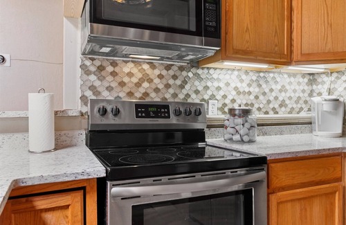 This is a completely upgraded modern two bedroom one story townhome which offers a full kitchen and bathroom with many amenities. The home is fully equipped to serve a short one night stay or a longer family stay. This space is well equipped with all the necessities in the kitchen, and full refrigerator, stove, microwave, coffee maker (Keurig), toaster, etc. There is a dinning room table with seating for four. There one bedroom with one queen bed, one futon that can sleep two located in the living room area with a sliding door for privacy. Additionally there is plenty of closet space and one full bathroom with a shower and bathtub combination. The living room features a 55 inch smart television and free wifi. There are plenty of extra blankets and towels provided. As an additional service to our guests we do provide amenities that include k-cup coffee pods, a variety of creamer cups, teas, shampoo, conditioner, and body wash.