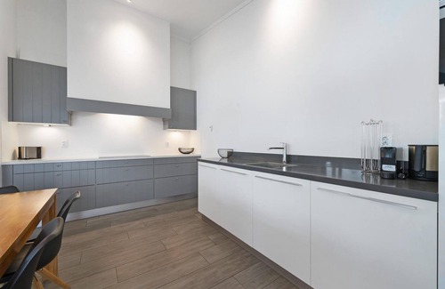 Fully equipped kitchen with a dining table (including stove, combination oven, Nespresso machine, and dishwasher)