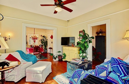 Tiny footsteps from the heart of the Historical District, The Annex percolates CHARM. Built at the turn of the century i.e. porches, huge windows, formal dining rm, sky-high ceilings, rolling parlor doors, wood floors furnished with curated chichi vintage decor and dreamy cloud-like beds. A novel way to earmark your Santa Barbara experience, most especially on foot. If you are seeking a snappy habitat to hang your hat and bring your cat? you are at (it)!
