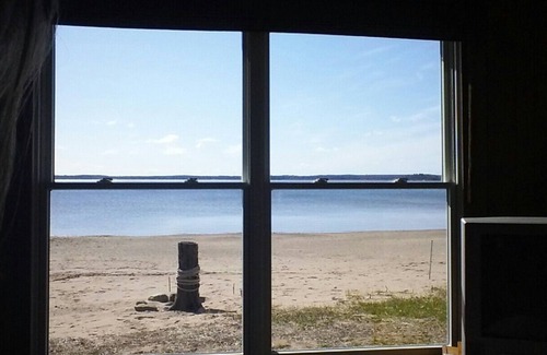 It's all in the details...Nostalgic beach decor throughout this 2 bedroom 1 bath cabin on the beach fully furnished for your next getaway! Yes it really is just outside your window! King size plush pillow top bed in one room over looking the beach and 2 single beds in the other. Living room windows (and bedroom window) overlook the lake with clean beach about 2 feet beyond the window. Brand new windows throughout entire cabin. Lake breezes fill the cabin when you open up the windows. Central air and gas furnace, bathroom includes toilet/sink/shower and contains all towels. Full kitchen with blender, electric skillet, toaster, microwave, coffee pot, refrigerator, oven/stove, pots/pans and dishes. Iron and ironing board provided. Seating for 4 in kitchen, as well as additional dining room table with 4 chairs. Home away from home. Twelve foot gazebo has electricity so you can stay up in the evening enjoying the breeze and playing games without the bugs. (Table and 8 chairs in gazebo). Fire pit also on property with plenty of fire wood. Over 200 feet of dock for your enjoyment all summer long! WIFI available if you choose, or else unplug and get away!