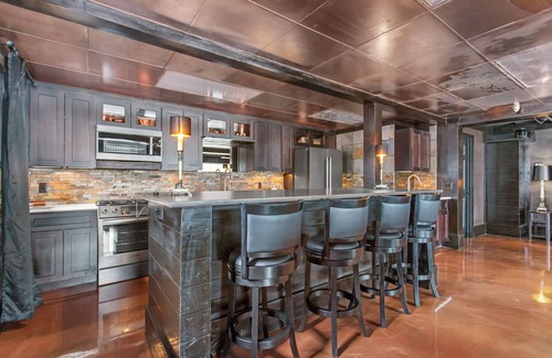 Unique work/live space! The Boardroom is a 1,200 sq ft, zero-step-entry space that boasts a gorgeous full kitchen, a large center island, a wet-bar area, and a cozy living room all nestled into an open concept design filled with natural light. This executive, luxury studio includes a full bathroom with laundry and an additional 1/2 bath. 2 queen size Murphy beds are easily pulled out for sleeping accommodations! Walk to parks, coffee shops, grocery stores, and more!