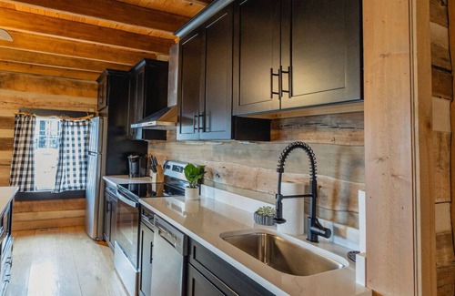 This 1820's Log Cabin was moved to our property over 20 years ago and was reconstructed as a bed and breakfast. In the past year we have fully renovated this cabin and connected the space to be one large living area. The cabin has a huge porch that wraps around three sides of the building. The kitchen has been fully renovated with all stainless steel appliances and a nice island for additional seating. There is a wood fired stove in the living room with couches and a dining room table that divides it from the kitchen. It has one half bathroom on the main floor. We installed a black spiral staircase that takes you to the two bedrooms upstairs. There is also a cozy living room that separates the two bedrooms right next to the charming full bathroom with soaking tub and shower combo that is shared between the guest. The bedrooms both have a large queen size bed held up by the unique log style bed frames that take you back in time. The Living room upstairs has an amazing view of the vineyard and rest of the property. We do have a washer and dryer on the main floor as well. This is great escape for any couple or couples needing a fun night in wine country! We are in remote area tucked away in the wilderness so sometimes we get visited by our friends the "bugs" which are mainly lady bugs that might come in our 1820s log cabin if the weather fluctuates which it tends to do in Missouri. It truly is beautiful but since it is a historic property the little bugs can get in. If there is ever an issue give us a call and we will get it taken care of. This property is the perfect getaway to unplug and a place to enjoy ALL the nature that comes with it!