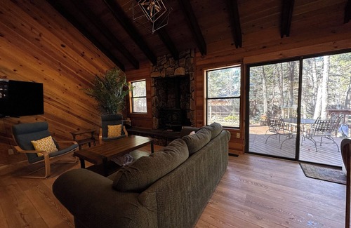 Discover serenity at this stylish 2 bedroom, 2.5 bath Pinetop Country Club retreat. Nestled on a quiet 1/3-acre lot, this updated home features luxurious king beds, additional sleeping space for 2 more, and a stunning Arizona room. Enjoy coffee or relax on the expansive back deck amid towering pines. Ideal for extended stays with a large garage and ample storage. Close to golf, hiking, and lakes, it’s perfect for both peaceful getaways and remote work. Please Note: Bikes and paddleboards are on site and may be used at your own risk. They are not part of the listed amenities and are not maintained or guaranteed. Please use care and return them as found. Security cameras: There are exterior cameras on the driveway and at the front entrance for guest safety. No cameras are inside the house. Also: There is an unfenced water feature on the property that is deep enough to pose a safety risk. Children and pets must be supervised at all times.