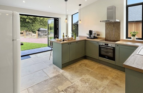 Directly outside the rear glass doors is a large patio area with seating overlooking the Exmoor landscape with fields of sheep literally on your doorstep. The patio also has a large Kadai firepit to keep you warm on an evening whilst taking in the breathtaking Exmoor scenery or for cooking "al fresco"