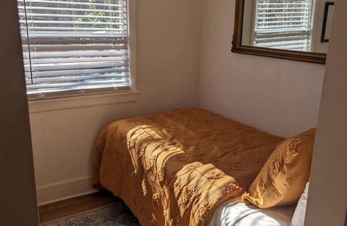 -Bedroom with twin bed; doubles as an office with desk for working remotely