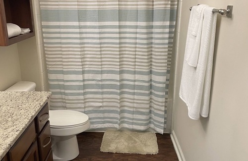 Enjoy a stylish experience in the Buckhead area. Close to shopping, night life and fine dining. This One bedroom suite has 1 king size bed and 1 queen air mattress. Fully equipped kitchen plus Free Wi-Fi and Free Parking.