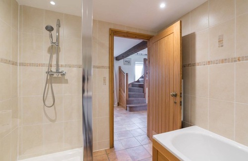 The Coach House is tastefully renovated, with an open plan kitchen, living room and dining room, with a door leading out to a walled private garden. There is a family bathroom downstairs with a bath, shower and loo. Upstairs there is a twin room and a double bedroom with an en-suite loo and shower. The semi detached cottage boasts character with exposed beams and features from when the property was used as a working building on the farm.