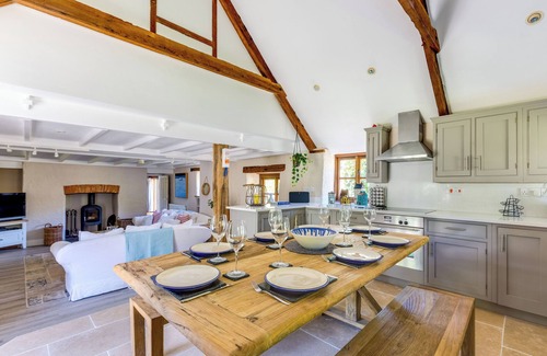 This home has an open-plan kitchen, dining area and sitting area with a woodburning stove, a first-floor snug, a ground-floor king-size bedroom with en-suite, a king-size and double with en-suites, and a ground-floor bunk room. Appliances consist of a electric oven, induction hob, microwave, fridge/freezer, washing machine and tumble dryer, and for entertainment, a TV with Sky, a further TV, DVD player and a selection of DVDs. Outside there is an enclosed, wrap-around garden with lawn, patio and furniture and a private driveway for 2 cars. Two well-behaved dogs welcomed, but sorry, no smoking. WiFi, fuel, power, bed linen and towels are all included in the price. You'll find a shop in 0.5 miles and a pub in 0.1 miles. Escape to rural Cornwall at The Coach House. Note: Check-in from 4pm, check-out by 9:30am. Note: There are steps down from the kitchen, into the sitting area; please take care.