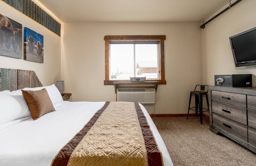 This rustically beautiful two-bedroom King Suite has all the comforts of home. With a fully equipped kitchen, a large luxurious bathroom, and a spacious, yet cozy floor plan. Enjoy the richness of a king bed in one bedroom and a queen bed with a queen-size sofa bed in the other. Just blocks away from the west entrance of Yellowstone National Park. This unit is sure to have everything needed to make your stay perfect!