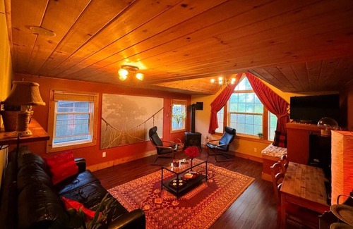 The Cozy Corner is a charming, peaceful place designed for comfort and relaxation. With warm wooden accents, a reading nook, and large windows offering lots of natural light, it’s the perfect spot to unwind. The bedroom features a comfortable king-sized bed and calming decor, while the open living area provides a welcoming space to relax. Located just around the corner from the Elora Mill, it's ideal for wedding guests or a perfect weekend getaway to recharge and enjoy the serene surrounding.
