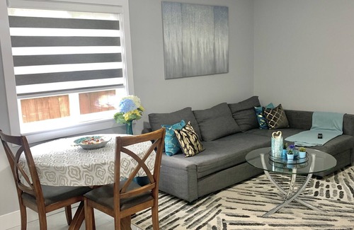 This beautiful, recently renovated suite features a comfortable room and a sofa bed. Located in a central neighbourhood with many falls and lakes nearby. The suite includes kitchen equipment such as utensils, plates, cups, coffee maker, toaster, electric stove and a microwave. There is also free parking on the driveway. No smoking allowed inside but guests are welcome to use the backyard! Available for daily, weekly or monthly bookings!