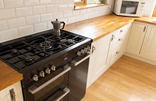 Head downstairs to find the large living area with comfortable sofas and a wood-burning stove, perfect for relaxing after a long day’s exploring. Next to the main living room, there is an additional 'snug' living area with several couches. There is also a dining room, and well equipped kitchen, which has everything you need for long suppers or big breakfasts before a big day out. There is also a bathroom on this floor, complete with a shower, plus a washer and drier.