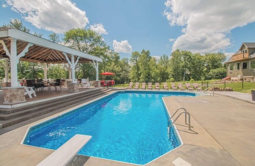 Hilltop Mansion and her Guesthouse sit on over three football fields worth of personal outdoor space. Outside we have a one-thousand square foot gazebo, two grills, a beautiful and well-maintained pool (heated optionally), manicured lawns, a basketball court, decks and many private balconies with serene mountain views.