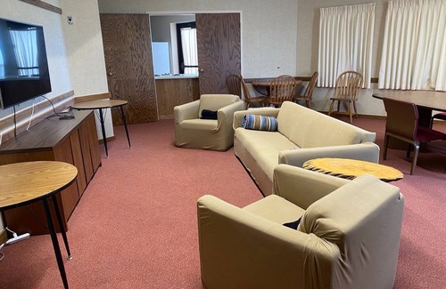 The Echo Center is an updated 9000 square foot building that has 8 bedrooms, sleeping up to 16 people. The kitchen is fully stocked and opens to the dining area/tv room, with games, puzzles and movies galore! The activity room can double as additional sleeping quarters or a place for quilting/crafting. Two large bathrooms have multiple stalls and a shower in each. The large center area contains a full size pickleball court, half basketball court, ping-pong table, corn hole boards and a 12 ft movie screen and projector (laptop not provided). Additional amenities include high-speed internet, outdoor barbecue and large grassy areas. The Clark's Fork of the Yellowstone River is a short walk down the road. Use this property as a base camp to Yellowstone National Park, the Pryor Mountains, the Beartooth Highway and Red Lodge Mountain, where outdoor adventure awaits.