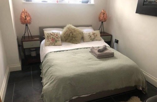 The living room in The Engine House has a stunning vaulted beamed ceiling . This open plan room has a large breakfast bar that opens into the modern fully fitted kitchen with integrated Bosch appliances. On the ground floor there is one of the double bedrooms and a stylish bathroom with bath/shower. Upstairs is the second bedroom with stunning en-suite. The house has under floor heating and is decorated to an extremely high spec with stunning antique and eclectic pieces.