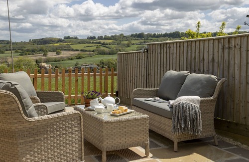 Upstairs on the top floor are two beautifully presented double bedrooms, one with a king-size bed and another with a double bed. The master bedroom enjoys more stunning views over the Cotswold countryside. On this level there is also a modern shower room with a large walk-in shower.