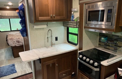 Spacious 32' foot Class C Camper set up and ready to be your base camp for your adventures. Centrally located in the heart of the Kenai Peninsula. You have plenty of space to sleep with a queen bed in the cabin, queen+ over the cab, and table that breaks down into a bed as well. The bathhouse on the property is also included in your stay with laundry, full size bathroom, and shower. Enjoy the outdoors with a firepit, picnic tables, and BBQ grill.