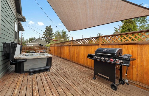 Relax in the private hot tub, unwind by the gas fireplace, or gather on the tiered deck for family barbecues under Bend’s famous blue skies. Whether you’re here to explore the outdoors, sip your way along the Bend Ale Trail, or simply recharge, The Haley House makes it easy to feel right at home.
