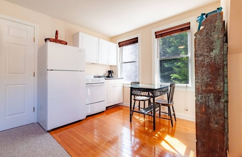 2nd floor Garage Apt: Living area with kitchenette (includes stove, refrigerator, and coffee pot), bathroom with stall shower, queen bedroom with twin Bed **The garage apartment is not available for rental after November 1st each year due to heating**