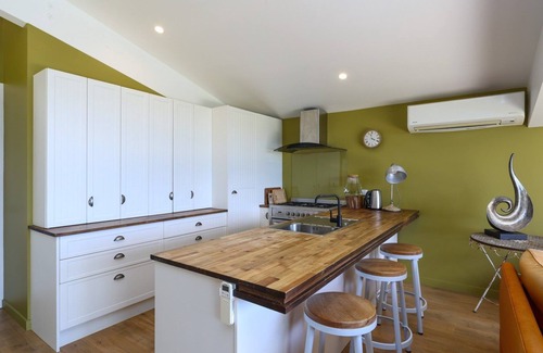 Main house - 'The Land' has four bedrooms, three bathrooms, dining room, kitchen with breakfast bar, a butler's pantry and two living areas - one a cozy lounge and the other allowing you to sit in comfort with breathtaking views. This house lends itself to a couples' romantic night away or a large extended family and friends get-together.