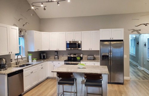 "THE MODERN TREE HOUSE" ~ Historic District ~ 2,100 SqFt Open-Plan ~ 3 BR/2BA has 3 Bedrooms , 2 Bathrooms, and max occupancy of 6 people. The minimum rental for this property is 1 nights, but this can change depending on the season you plan on staying. Previous guests have given good rated it, and VRBO labeled it a top-rated House because of the excellent services rendered by the owner or manager of this House, and has consistently provided great experiences for their guests. Most families or guests that use it recommend it to their friends and some of them are repeat guests. House has a friendly neighborhood, and the Mount Dora has interesting places to visit. If you want to learn more about the House in Mount Dora, such as places to visit and things to do nearby, you can check below to learn more.