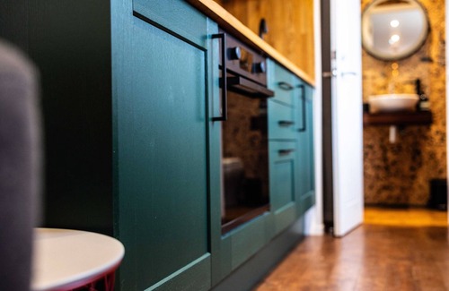 Topped with solid oak work surfaces the modern kitchen is filled with all the amenities and appliances you could need including an oven, fridge, microwave, kettle, toaster, hob and much more. You'll also find a Nespresso machine with complementary coffee pods. A bespoke antique pine breakfast bar with handmade stools sits at the window side so you have the perfect view across the landscape. You’ll find all the household essentials including an iron, ironing board and a vacuum along with smaller consumables under the sink.
