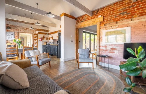 Effortlessly relaxed, this luxury detached open-plan two bedroom, two en-suite barn conversion has exposed oak beams and lofty ceilings which complement the retro style furnishings and individual flair which the owners have so cleverly introduced into this bespoke conversion, which is in easy reach of the beach and perfect for a short break or longer stay.