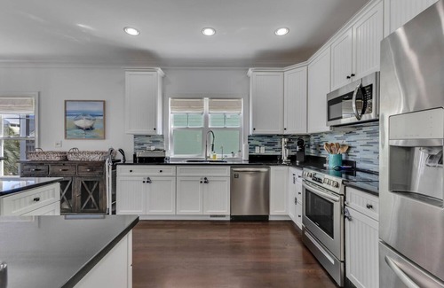 Spread out across multiple levels, this home has been thoughtfully designed to give everyone their own space while still bringing everyone together for unforgettable beachside memories. On the ground floor, you'll find a beautifully appointed private suite featuring its own full kitchen, cozy living area, private bath, and direct access to a covered patio, ideal for guests who want a little extra privacy or for multi-generational families traveling together.
