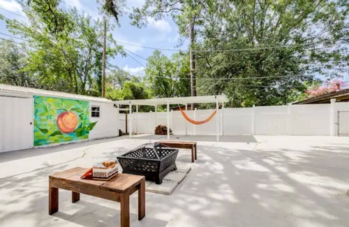 Newly renovated home in downtown Pooler where it’s cooler. Conveniently located 5 minutes off of I-95, with an epic outdoor space, and a thoughtfully decorated interior featuring the work of local artists. Perfect for long-term stays.
