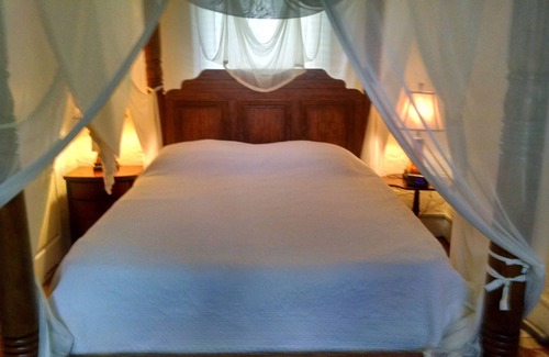 The Rohde Guest house is a hidden little gem. Spacious, convenient to downtown yet tucked away on a dirt lane just off San Marco Ave. Park your car in your private off-street parking spot (2) and you will not need to move it for the duration of your trip. One bedroom with a canopy bed and memory foam mattress. The pull out couch in the living room sleeps 2 comfortably. The kitchen is fully stocked for cooking and eating. The claw foot tub in the bath has a shower with plenty of hot water. There is a screened in porch in the front and a private spacious deck on the side yard, with a table and four chairs. The yard is fully fenced.