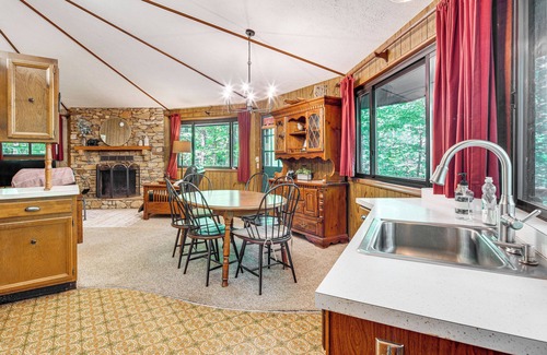 You'll be transported to a treehouse under the forest canopy when you arrive at this 3-bed, 1.5-bath Hendersonville cabin! This vacation rental was lovingly designed by Grandpa Ralph in 1974 and now awaits families and friend groups seeking a unique mountain retreat. Enjoy unspoiled views of the wildlife sanctuary from the deck, then cozy up by the fireplace on chilly evenings. When it's time to venture out, you'll have your pick of hiking trails with the Pisgah National Forest as your backyard.
