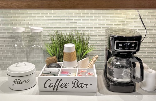 Grassy backyard with gazebo, BBQ, and patio dining, perfect for meals al fresco. String lights add ambiance to the evenings. Backyard is completely enclosed for your fur babies to enjoy! Additional amenities include a quite and enclosed laundry room, WiFi, cable TV in living rooms, smart tvs in bedrooms, free parking in driveway and in street. No HOA community!