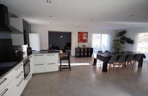 The villa is new, spacious (150m²) and comfortable. It includes a superb master suite on the ground floor, with its dressing room and its spacious adjoining bathroom. Its large open kitchen will allow you to concoct your dishes in a new and modern environment. A large family table for up to 10 people will allow you to enjoy your meals. You can rest or enjoy quieter moments in the living room. For families who wish, you have at your disposal a Wii game console to play Mario Kart or others!