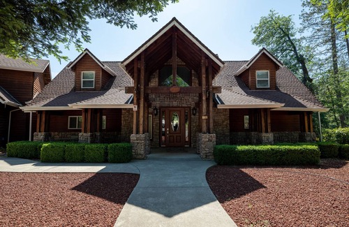 Walk outside your balcony and enjoy breathtaking views every day. At night relax around the large fire pit under the stars. After a long day of fun soak into the jacuzzi hot tub for total relaxation. BBQ on your own private deck or relax in your own recreation room, complete with fooseball table,pool table,T.V. and games for the kids. Our gourmet kitchen and grand dining room table allows seating for up to 14-16. Its a great place to gather for family meals or meetings. Lake water behind the home drops depending on the season and when it does it allows for great hiking. Pool is not heated.