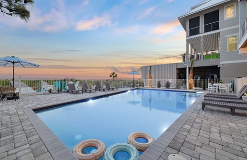 Enjoy nine well-appointed bedrooms, a gourmet kitchen, multiple outdoor lounging areas, and the largest private pool in Cape San Blas. Relax in the hot tub, fire up the outdoor kitchen, or challenge your family to a game of ping pong under the home’s shaded spaces. In the evenings, gather around the cozy fire pit to share stories and roast marshmallows. With direct beach access via a private boardwalk, a $400 beach gear credit, and the comfort of a residential elevator, this premier vacation rental is designed for unforgettable seaside memories.
