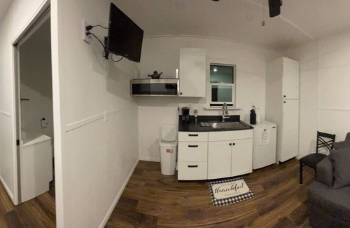 Cozy Tiny Home with Roku T.V, blackout curtains comfy queen bed. Kitchen area with electric griddle and microwave. Incredible views of boundary peak and silver peak mountain ranges. Walking distance from a beautiful fast moving creek with a fire pit. 10 minute drive from the Fishlake valley natural hot springs. Convenient halfway point between Las Vegas and Yosemite.