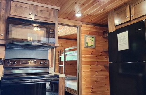This unit sleeps 8 with a queen bed, twin bunk beds, couch, and two pallets in the loft. A full kitchen, bathroom with shower, and AC and heat ensure you have all the comforts of home.