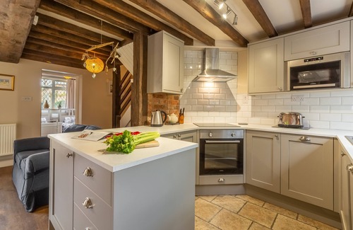 Perfect for family gatherings, this dog-friendly property boasts a spacious sitting room with vaulted beamed ceiling and cosy wood burning stove, ideal for relaxing on cooler nights; and a large beamed kitchen/dining room, perfect for socialising. On warmer days the french doors open into the pretty gated garden for summertime dining and barbecues.