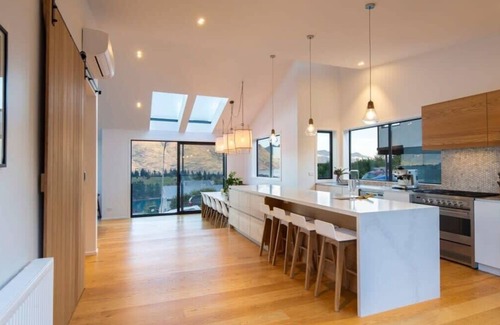Tonic Lodge is a brand-new, luxurious five-bedroom home offering stunning views across Lake Wakatipu and The Remarkables. Perfectly designed for both relaxation and adventure, it comfortably sleeps up to 12 guests, making it ideal for large groups or family getaways. The home features a fully equipped gourmet kitchen, media room, superfast unlimited WiFi, wine fridge, BBQ, and a spacious entertaining deck.
