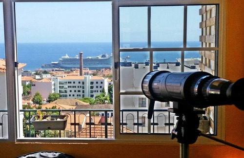 Dining room with large terrace with cable TV, sound system, with a magnificent view over the bay of Funchal and the mountains, monoculars to contemplate the great view, ideal to see the Festival of Fire at the end of the year.