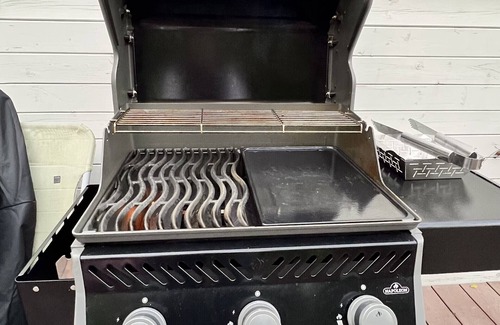 1 private outdoor patio/garden with table, chairs, gas barbecue and deckchairs