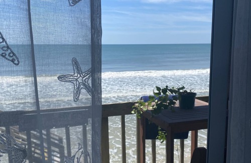 Enjoy a ground floor 1 bedroom that has been completely renovated throughout and very un tastefully decorated with a Mediterranean theme . It has a pull out couch that can accomodate 2 more if needed , and an extra comfy cot if you would rather not share the pull out . Everything in the unit is new and updated to the highest quality . It is literally just steps from the ocean with the most amazing view of the Atlantic where you can watch dolphins play, surfers surf , enjoy fishing right out front or even watch shrimp boats in the morning while you have your coffee on the deck. It has high quality stainless appliances , new luxury vinyl plank throughout, new washer/dryer, and high speed internet. TVs are in the bedroom as well as living room and equipped with netflix, hulu and cable. This is a ground floor that will allow you to go in and out with ease as well as offer the most incredible views around !!Also enjoy the views on the deck while sitting in your directors chairs with a matching table to enjoy your meals or drinks overlooking the ocean and just relaxing .