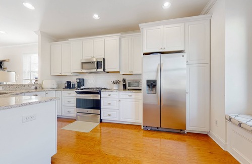 After a day at the beach, use the outdoor shower to rinse off the sand, then toss the day’s clothes in the washer/dryer for a quick refresh. Entertainment options at home are plentiful, and include four streaming-capable TVs, free cable, board games, lots of toys for the kids, and a foosball table on the ground floor. Remote workers will appreciate the free high-speed WiFi and two dedicated desks. Spend cozy nights at home snuggling up in front of the gas fireplace or cooling off in the central AC if it’s warm, then retire to any of five plush bedrooms, including a primary bedroom on the second level with direct balcony access and an en suite bath. The Bethany Beach getaway you’ve been dreaming of awaits - all that’s left to do is book.