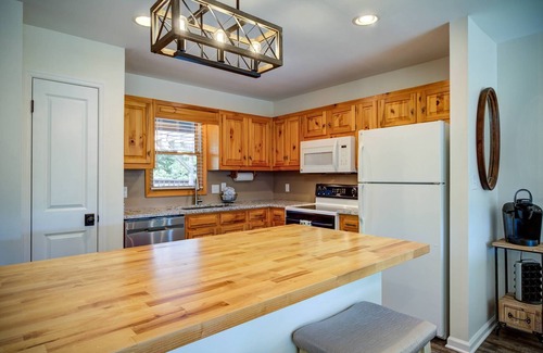 Welcome to Mountain Melody!! This newly renovated 2 bedroom 2 bath townhouse sits among the treetops just minutes from Downtown Blowing Rock and The Blue Ridge Parkway! Mountain Melody is literally at the "End of the Road." You enter into the townhouse through a spacious mudroom which leads into the open concept kitchen/dining area. The kitchen is fully equipped with everything you can imagine needing to whip up a meal. There is seating for 6 at the dining table and two bar stools at the butcher block island! The 'sunken' living room has plenty of seating for relaxing by the gas fireplace or streaming your favorite TV show. The large sliding glass doors lead to a brand new expansive deck with outdoor seating to enjoy the view! The first bedroom offers two twin beds (one has a twin trundle underneath just in case!), a large closet with games & books, a smart TV, and the jack-n-jill full bathroom. The main bedroom has a king bed, smart TV, a desk, spacious closet, a private en suite, and direct access to the back deck! At the front of the townhouse, there is a large picnic area with a gas grill so you can eat under the stars and the twinkling string lights! Parking for 2 cars. 4WD or AWD recommended for access in the winter.