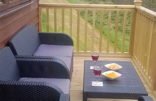 It is fully furnished and has full central heating and double glazing. It is incredibly warm even in the Winter! The accommodation comprises of one double and one twin bedroom, bathroom with bath and shower, large lounge (overlooking balcony and woodland) with television, free sat box, DVD player, Hi-Fi, and log effect gas fire. The adjacent dining kitchen is fitted with dishwasher, microwave, washer/dryer, fridge and gas cooker.