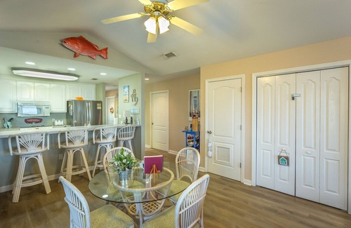 Tranquil Wind is Back with two screened in porches, New outside shower, Concrete parking under the home. This Beautifully decorated home has the most comfortable King bed in Master Bedroom, open floor plan, leading out to the large screened in porch with hammock, also a swing bed on the lower screened in Room. New flooring ,New dishwasher and refrigerator, Bonus room downstairs with a Queen Bed.