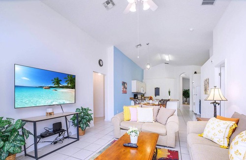 This vibrant 4-bedroom house is newly furnished, with a fully stocked kitchen, a dining area, and spacious bedrooms. It comes with a private pool, games room, on-site parking, and much more. This property is only minutes from Disney!
