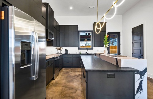 Gather and connect in the beautifully designed living areas of each home. Large windows fill the spaces with natural light, while sleek fireplaces and comfortable furnishings create a welcoming atmosphere. Adjacent dining areas are perfect for shared meals or board games, and the kitchens, outfitted with premium appliances and spacious islands, make meal prep enjoyable and easy.